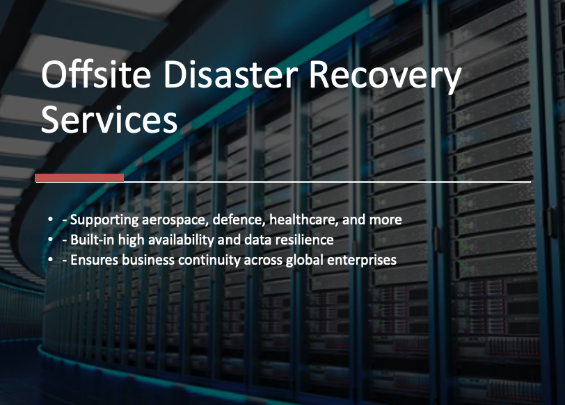 With disaster recovery (DR) protocols embedded across every layer—hardened against both digital and environmental disruptions—we ensure seamless continuity for aerospace, AI, and defence clients.