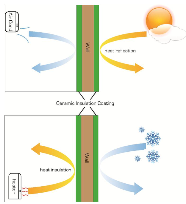 The application of Ceramax™ Insulation Coating on the interior wall will provide the effect of fast cooling during hot weather (summer) and fast heating during cold weather (winter). This provides a very comfortable living environment and is energy saving.