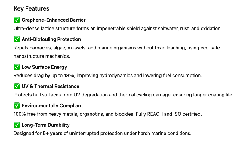 As a trusted leader in advanced nanotech coatings, Watercloud Graphene Store supplies industry-grade marine coatings backed by years of R&D and real-world performance. Our products are designed to outperform traditional antifouling paints, while promoting sustainability and operational cost savings for our marine clients.